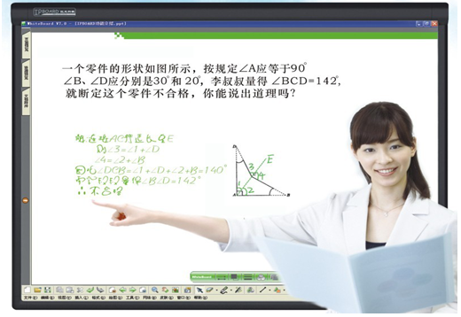 10、抗干擾:無(wú)電磁和光干擾問(wèn)題,使用激光教鞭激光指示在板面時(shí)不會(huì)影響電子白板正常使用,抗光干擾能力強(qiáng),使用時(shí)不受陽(yáng)光,燈光,紅外等光線影響。